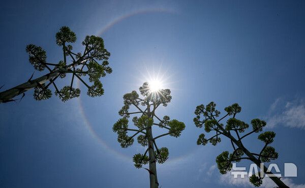 [서울=뉴시스] 다시 무더위가 찾아온 15일 오후 제주시 용담해안도로변의 한 카페 정원에 '100년에 한 번 꽃을 피운다'는 용설란(龍舌蘭)이 뜨거운 태양 아래서 개화 직전으로 자라나 시선을 사로잡고 있다.