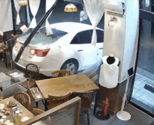 당시 사고 장면이 촬영된 영상에는 A씨 차량이 음식점 유리창을 뚫고 식사 중인 손님의 테이블 뒤쪽 방향으로 넘어가는 장면이 담겨 있다.