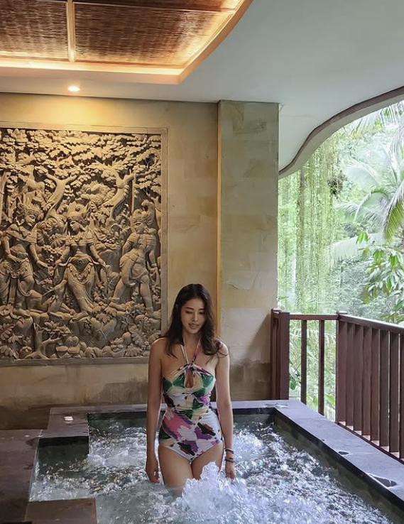 함께한 사진 속 인도네시아 발리로 신혼여행을 떠난 모습이다. 야자수와 휴양지 건물이 이국적인 풍경 속 서동주는 보라색 플로랄 패턴이 돋보이는 비키니와 랩스커트를 매치해 건강한 매력을 뽐냈다.