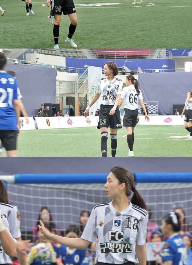 이날 ‘FC구척장신’의 대기실에는 반가운 얼굴이 등장해 눈길을 끌었다. 그 주인공은 바로 과거 팀의 수비수로 활약했던 송해나. 부상 회복 후 취미로 축구를 하는 그녀는 “한 명 빠지면 바로 들어오니 조심해”라는 농담 섞인 응원으로 팀 분위기를 유쾌하게 풀어주었다. 원년 멤버 송해나의 깜짝 응원에 힘입은 구척장신이 승리를 거머쥘 수 있을지 관심이 쏠린다.