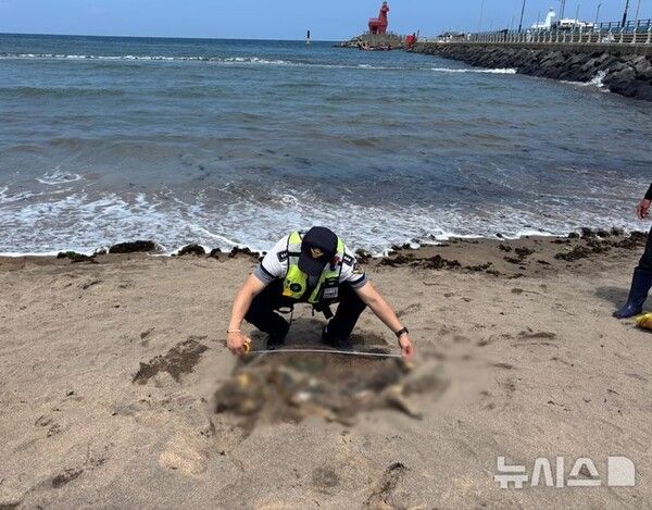 뉴시스 보도에 따르면, 15일 제주해양경찰서에 따르면 이날 오전 10시10분께 제주시 이호테우 해수욕장 백사장에서 '거북이 사체가 있다'는 바다환경지킴이의 신고가 접수됐다.