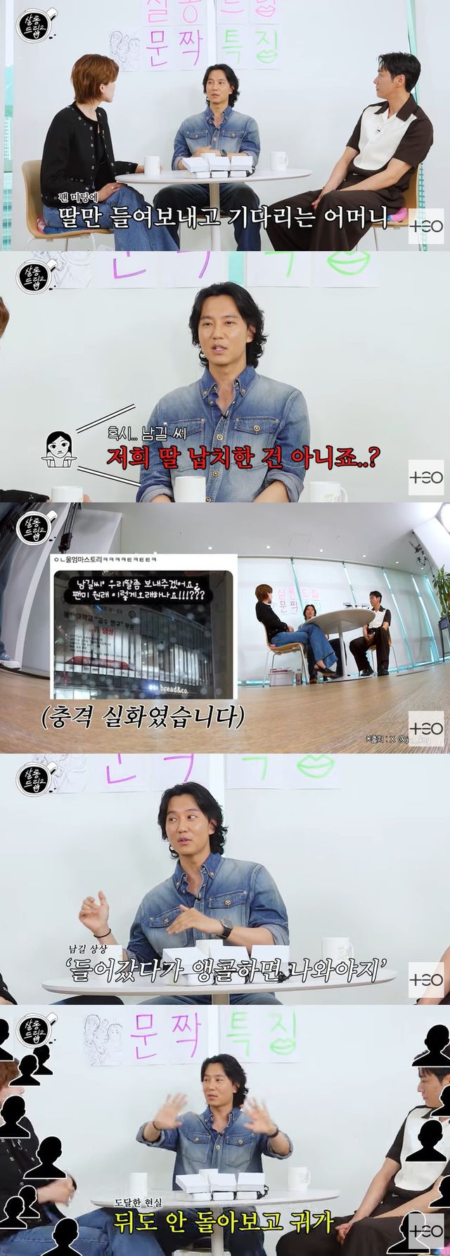 김남길은 "어느 정도 길게 한다는 걸 알고 오는데, 가끔 어린 친구분들은 어머니가 같이 오셔서 밖에서 기다리는 분도 계시지 않냐"면서 "저희한테 '혹시 남길 씨 저희 딸 납치한 건 아니죠?', '오늘 안에 끝나긴 하는 건가요'"라고 한다고 전해 웃음을 자아냈다.