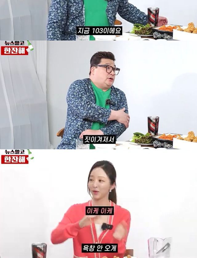 이에 윤정수는 "이제 드디어 높다고 나왔다"며 "위험 단계라고 나왔다"고 밝혔고, 김현욱이 "왜 갑자기"라고 의아해하자 "지금 103kg"라고 몸무게를 공개했다.