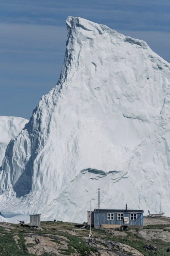 그린란드의 한 마을 앞마다에 초대형 빙산이 접근하며 주민들의 긴장이 고조되고 있다.