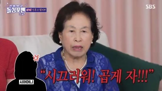 뉴시스 보도에 따르면, 전원주는 15일 방송한 SBS TV 예능프로그램 '신발 벗고 돌싱포맨'에서 이렇게 말하며 "시어머니가 남편과 나 사이에서 잤다. 나를 감시했다"고 말했다.