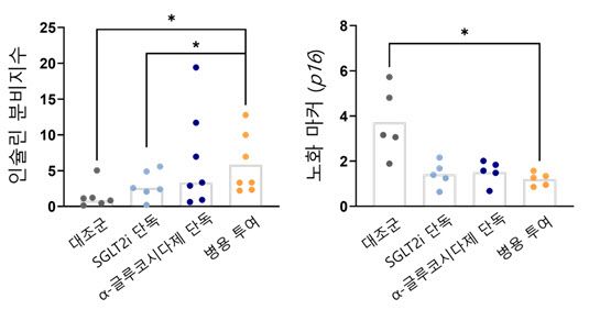 조영민 교수(내분비대사)는 “이번 연구는 제2형 당뇨병 치료에 있어 기존 승인 약제를 병용함으로써, 췌장 베타세포의 기능 회복뿐 아니라 노화 억제라는 추가 효과를 확인한 데 의의가 크다”며 “당뇨병은 고령층에서 주로 발병하는 질환인 만큼 인체 대상 임상 연구를 통해 동일한 효과가 재현되는지 확인해 나갈 계획”이라고 말했다.