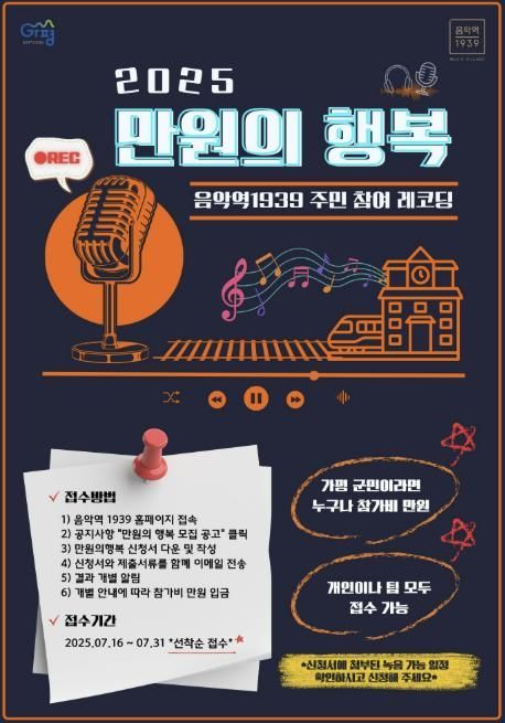 [와이뉴스] 가평군이 음악도시 이미지에 걸맞게 ‘2025년 음악역1939 만원의 행복’ 레코딩 프로젝트를 진행한다.