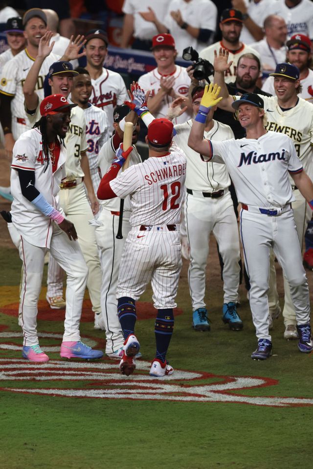 내셔널리그 올스타는 16일(한국시간) 16일(이하 한국시간) 미국 조지아주 애틀랜타 트루이스트 파크에서 열린 2025 미국 MLB 올스타전에서 아메리칸리그 올스타와 홈런 스윙오프까지 가는 혈투 끝에 승리했다. 6-6 동점 상황에서 치른 '스윙오프'에서 카일 슈와버(필라델피아 필리스)의 3개의 홈런을 때려내며 내셔널리그의 승리를 가져왔다.