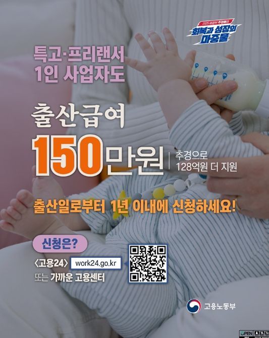 [와이뉴스] 특고·프리랜서 1인 사업자도 출산급여 150만 원