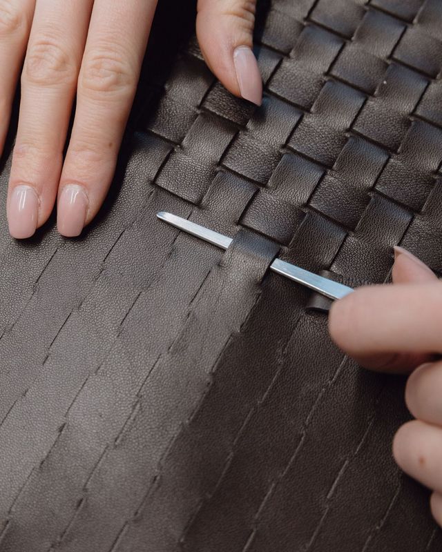 이탈리아어로 ‘직조, 엮음’이라는 뜻의 인트레치아토는 얇고 가느다란 가죽 스트랩을 손으로 정교하게 엮는 수공예 기법을 일컫습니다. 그렇게 완성된 직조 패턴은 보테가 베네타를 식별하는 얼굴이자 브랜드 전체를 아우르는 징표로 널리 알려져 있죠. 그리고 이렇게 설명해도 무리가 없을 거예요. 보테가 베네타의 역사는 인트레치아토의 역사와 일맥상통한다. 1970년대 중반 보테가 베네타의 장인들은 바느질이 어려운 두꺼운 가죽의 해법으로 끈처럼 얇게 절단한 가죽을 하나하나 엮었다고 합니다. 이 과정에서 내구성을 높이기 위해 기존의 수평 직조 대신 대각선으로 촘촘히 짜는 방법을 고안했는데, 결과물이 소스라치게 놀라웠습니다. 부드러운 실루엣과 역동적 미감을 갖춘 독창적 디자인이 그렇게 탄생한 것이죠.