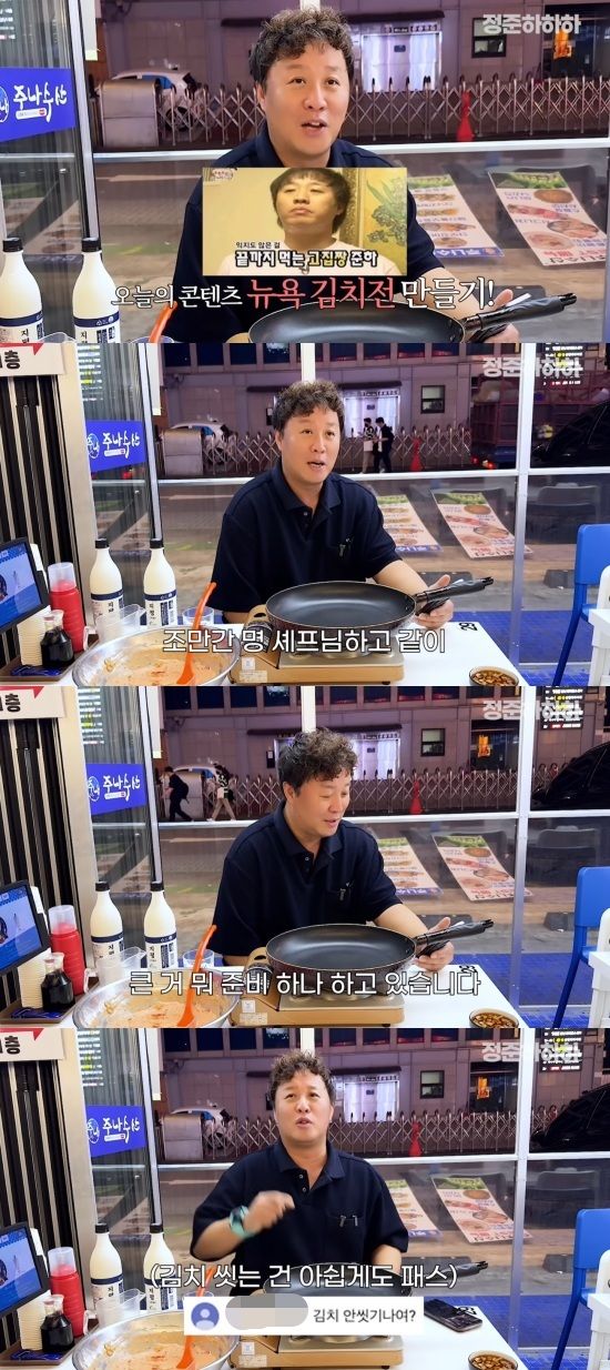 공개된 영상에서 정준하는 비오는 날 자신이 운영하는 가게에서 라이브 방송을 진행하며 김치전을 만들어먹는 콘텐츠를 진행했다.
