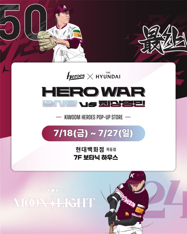 이번 행사는 지난 3월 14일부터 27일까지 진행한 팝업스토어에 이어 두 번째로 열리는 행사다. 이번 팝업스토어 타이틀은 ‘HERO WAR : 송사탕 vs 최상영민’이다. 내야수 송성문과 투수 하영민의 경쟁 구도라는 재밌는 설정으로 팬들에게 다양한 볼거리를 선사한다.