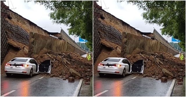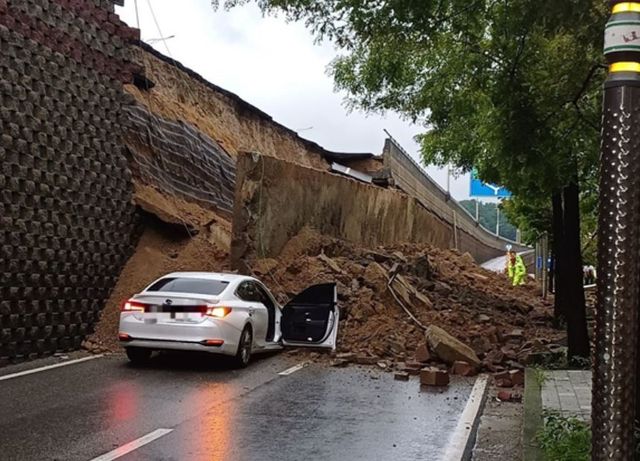 무너진 옹벽에 깔린 차량 / 경기도소방재난본부 제공