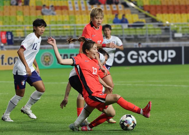 한국은 계속해서 대만 골문을 두드렸다. 후반 6분 장슬기의 크로스를 상대 수비수가 걷어냈다. 이때 쇄도하던 강채림(수원FC 위민)이 논스톱 슈팅으로 연결했으나 골키퍼가 쳐냈다.