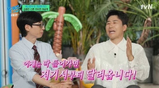 16일 방송된 tvN '유 퀴즈 온 더 블럭'(이하 '유퀴즈')에서는 김종민이 신혼 생활을 언급한 장면이 전파를 탔다.