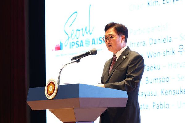 뉴시스 보도에 따르면, 우 의장은 이날 서울 코엑스에서 열린 '2025 세계정치학회 서울총회' 고위급 라운드테이블 기조연설에서 "오늘날 민주주의는 많은 국가에서 위협받고 있으며, 한국 역시 비상계엄이라는, 민주주의의 존립 자체가 흔들릴 수 있는 중대한 위기를 겪었다"고 말했다.