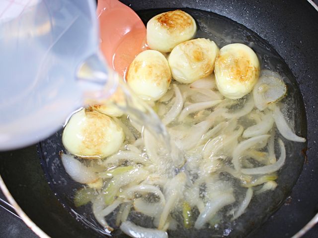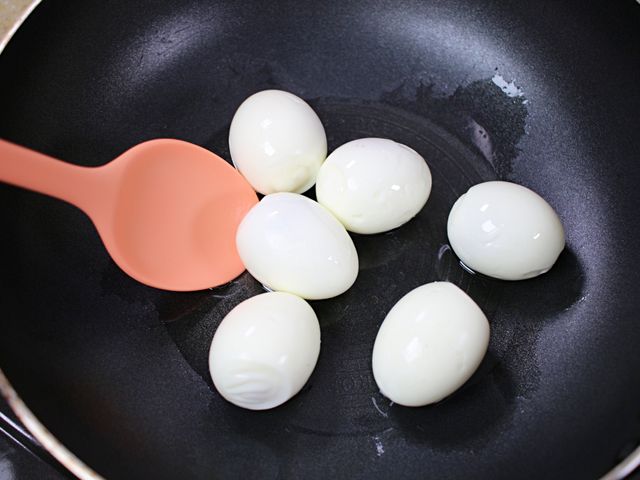 기름 넉넉하게 두른 웍에 삶은달걀을 구워주세요.