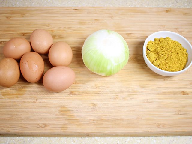 달걀, 양파, 카레가루 준비했어요.