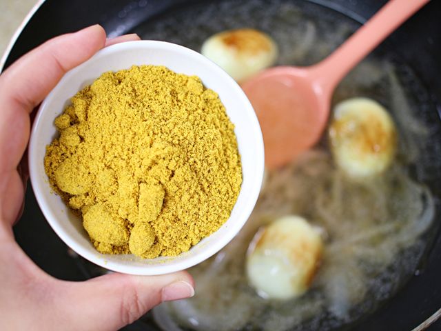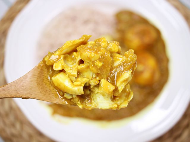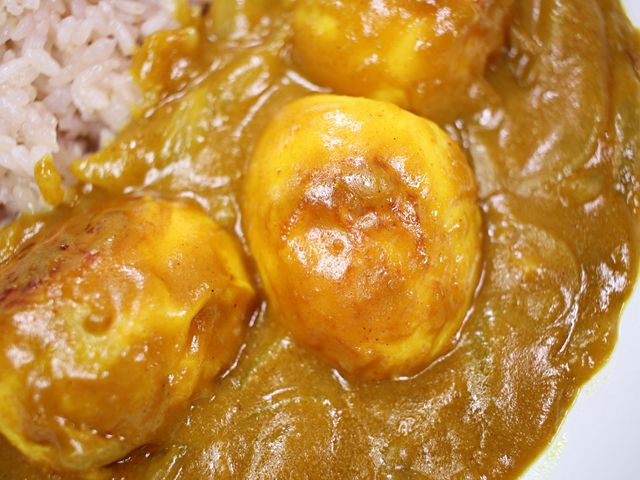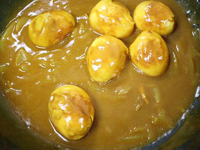 노릇하게 구운 달걀이 카레 소스에 푹 스며들면서