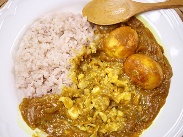 달걀 특유의 담백함이 진한 카레맛과 어우러져