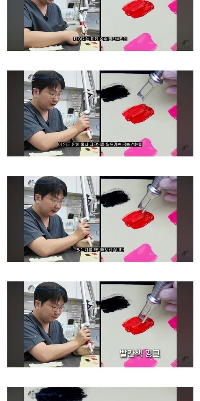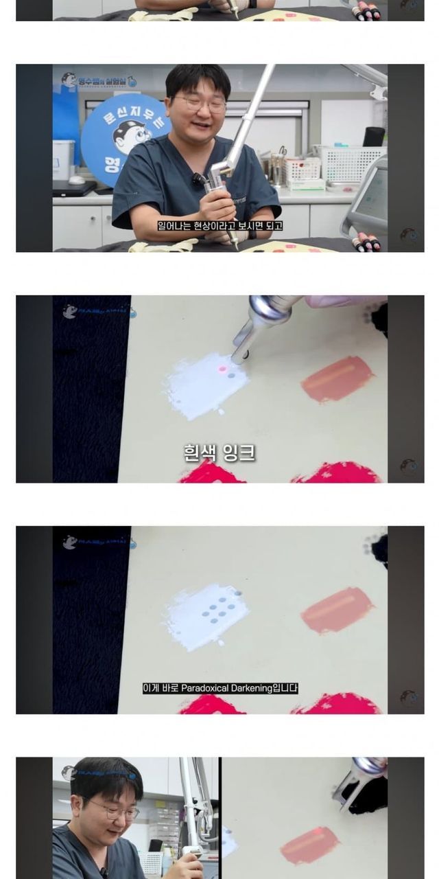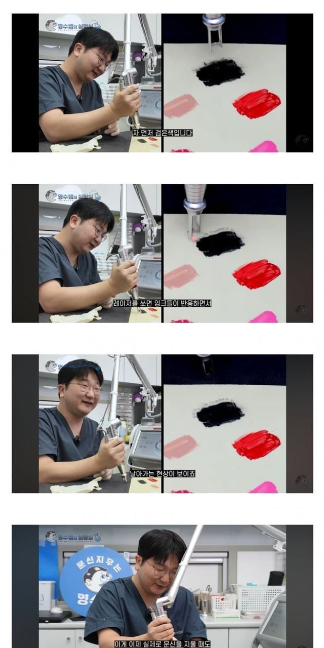 레이저 쏘면 철성분이 환원되면서 까매지는거라고 하네
