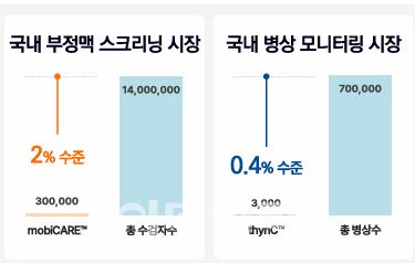검진센터 전용 실시간 모니터링 시스템을 구축했고, 도입 검진기관 확대를 위해 운영 레퍼런스를 확보했다. 현재 한국의학연구소(KMI)와 한국건강관리협회(MEDICHECK) 등 대형 검진센터에 본격적인 공급이 시작된 상태다. 국내 부정맥 진단 처방 건수는 60만건, 부정맥 스크리닝 수검자 수는 1400만명으로 모비케어의 진입률은 각각 33%, 2% 수준이다. 이는 웨어러블 심전도 분석 서비스 국내 1위를 차지하는 규모다.