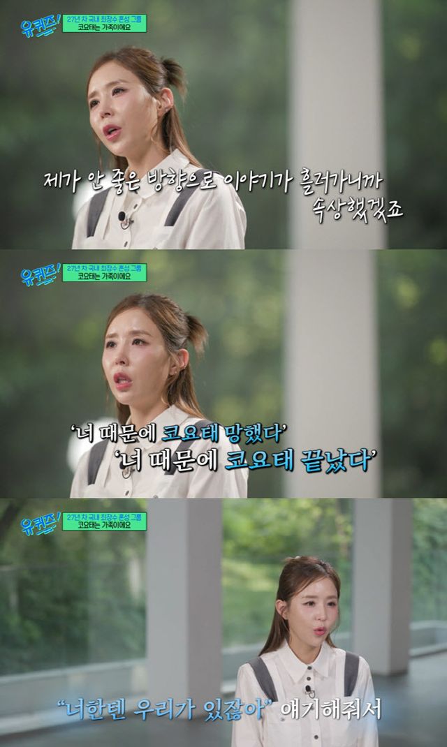 그러면서 “혹여라도 팀에 피해가 갈까봐... 일부러 댓글이나 반응을 보고 있다. ‘너 때문에 코요태 끝났다’는 게 그 어떤 댓글보다 무섭고 가장 아프고 힘들다”며 “저희는 굳건한데 저 하나 때문에 멤버들까지 휩쓸려서 미움을 받을까봐 걱정이 된다”고 전했다.