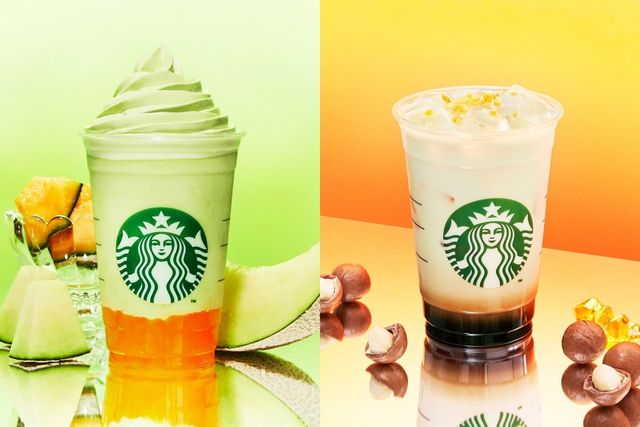 더 멜론 오브 멜론 프라푸치노 (왼쪽), 로스티드 마카다미아 라떼 (오른쪽) / 스타벅스 코리아 제공