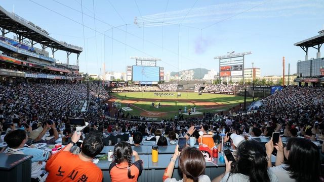 지난 12일 오후 대전 한화생명볼파크에서 열린 '2025 신한 SOL Bank KBO 올스타전'에서 대한민국 공군 특수비행팀 블랙이글스가 축하공연을 선보이고 있다. / 뉴스1