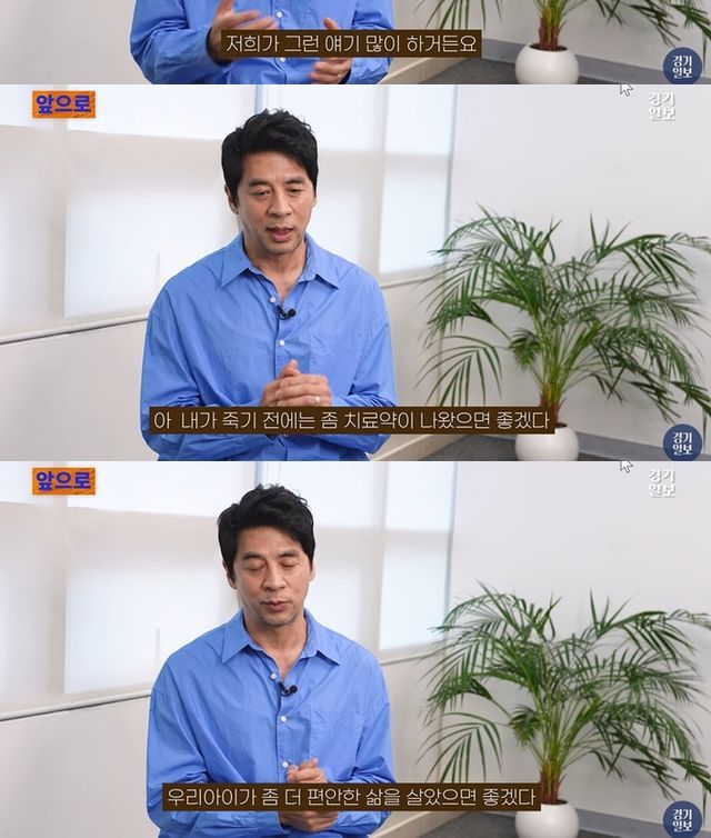 인생의 최종 목표에 대해서 권오중은 "부모가 가장 신경 쓰는 건 자식이다. 아직 제 아들은 치료약이 없다. 극 휘귀질환이라서 세계적으로도 몇 명 없지만 치료약이 없다"며 "저희가 그런 얘기 많이한다. '내가 죽기 전에는 치료약이 나왔으면 좋겠다', '우리 아이가 좀 더 편안한 삶을 살았으면 좋겠다'"고 아버지로서의 간절한 바람을 드러냈다.