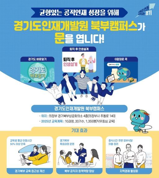 도는 7월부터 ▲경기도바로알기 ▲퇴직후 인생설계 ▲G맘대로 콕(과목선택형 교육) 등 다양한 직무교육 과정을 운영한다. 2025년 총 교육 규모는 10과정, 20기수, 1,355명이다. 향후 북부 특화과정 개발 등을 통해 북부 공직자들의 정책역량을 높이고, 다양한 교육기회를 제공할 계획이다.