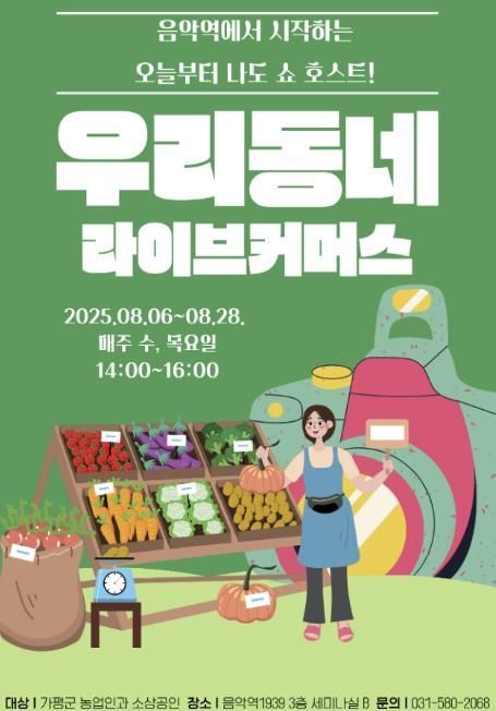 교육 과정은 △라이브커머스에 대한 기본 이해 △촬영기법 △상품 소개 스크립트 작성 △현장 실습 등 초보자도 쉽게 따라올 수 있도록 구성돼 있다. 신청 대상은 가평군에 거주하거나 사업장을 둔 농업인과 소상공인으로, 접수 기간은 7월 16일부터 8월 4일까지다. 접수는 전화 또는 이메일로 신청하면 된다.