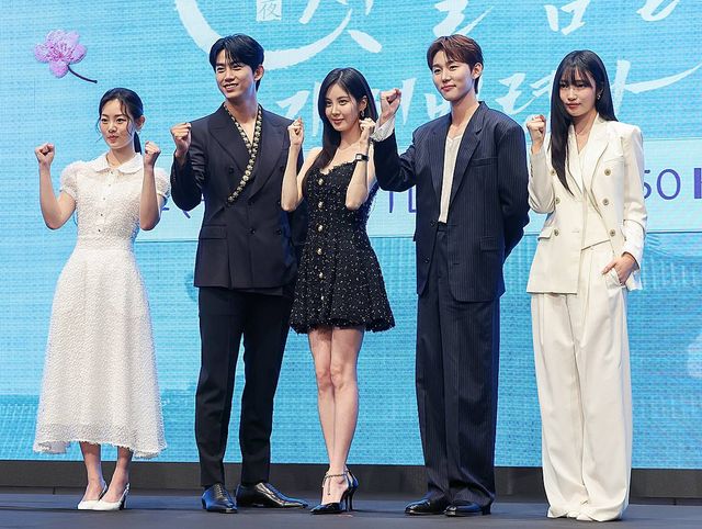 배우 권한솔(왼쪽부터), 옥택연, 서현, 서범준, 지혜원이 지난달 11일 오후 서울 구로구 신도림동 더 세인트 그랜드볼룸에서 열린 KBS 2TV 새 수목드라마 '남주의 첫날밤을 가져버렸다' 제작발표회에 참석해 포즈를 취하고 있다. ‘남주의 첫날밤을 가져가버렸다’는 평범한 여대생의 영혼이 깃든 로맨스 소설 속 병풍 단역이 소설 최강 집착남주와 하룻밤을 보내며 펼쳐지는 로맨스 판타지극이다 / 뉴스1