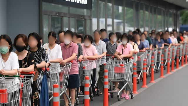 대형마트 앞에 줄 선 시민들 자료 이미지