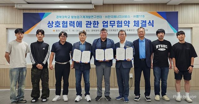 | ▲ 경북대학교·㈜한국에너지서비스·㈜119팜 ,농업기술 및 에너지 융합 통한 지속가능 농업 MOU 체결 |