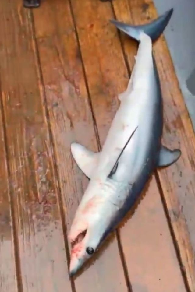 강원 고성 앞바다에서 청상아리가 낚싯대에 걸려 올라오는 이례적인 사건이 발생했다.