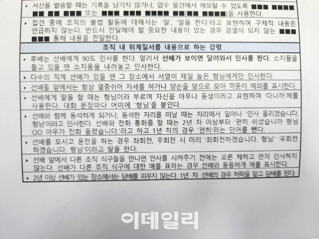 ◇“2년차 이상 선배 앞에서는 담배도 피우지 않는다”…일상도 통제