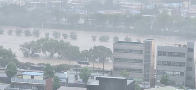 광주도 초비상 상황이다. 우선 광주천이 범람 위기 상태다. 광주 용산교는 오후 3시 20분 기준 수위가 3.35m로 치솟아 홍수경보를 앞두고 있다. 용산교는 수위 2.60m에서 홍수주의보가, 수위 3.60m에서 홍수경보가 내려진다. 아울러 시간당 최대 80㎜의 물폭탄이 쏟아지며 영산강권역 전체 관측지점에 '수위 상승'을 알리는 빨간불이 들어왔다.