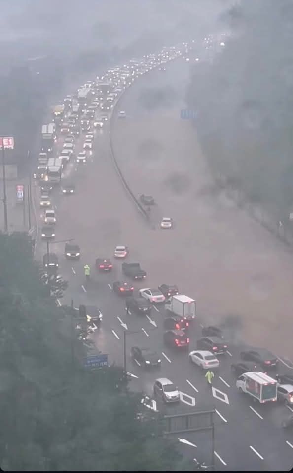 강한 빗줄기에 흘러내린 토사물이 도로 주변 배수로를 막았다. 점점 차오르는 물은 어느새 어른 허벅지를 높이를 거뜬히 넘어섰다.