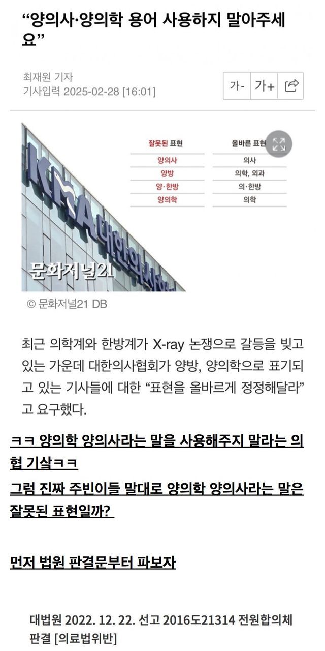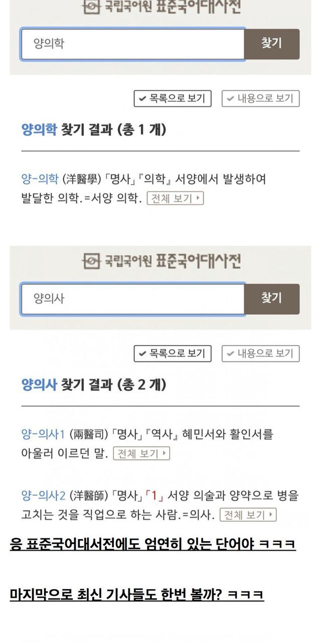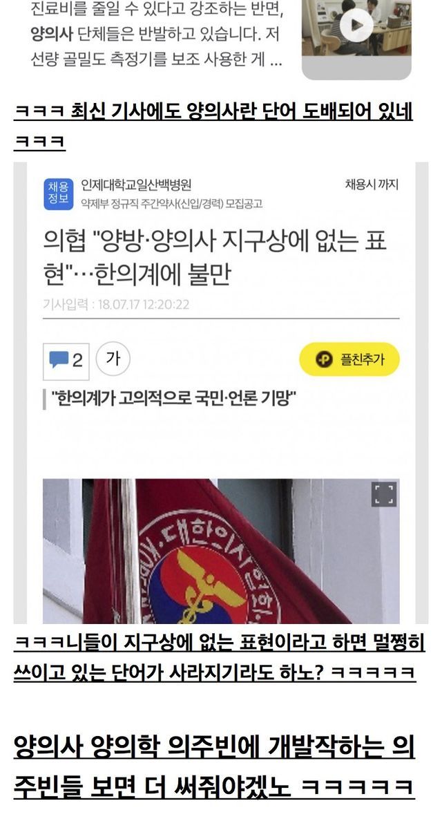 오늘도 나온 의주빈들의 개소리 양방 양의사 양의학은 잘못된 용어라는데 이번이 처음이 아니었노?