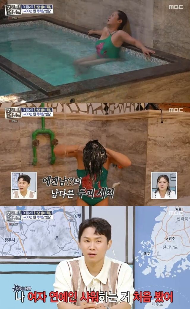 스튜디오에서 이를 지켜보던 양세형은 "나 여자 연예인 샤워하는 거 처음 봤다"며 당황했고, 양세찬은 "누나도 깡 좋다"고 반응해 웃음을 자아냈다.