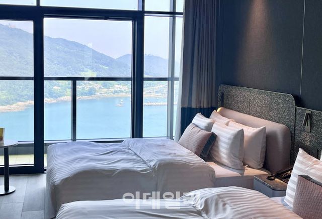 | 남해 바다가 한 눈에 들어오는 쏠비치 남해 객실 (사진=이민하 기자) |