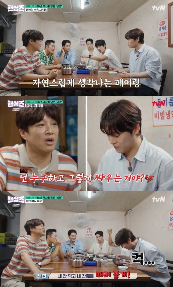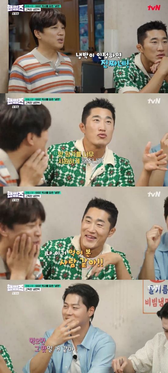 17일 방송된 tvN '핸썸가이즈'(이하 '핸썸즈')에서는 존박이 게스트로 출연한 가운데 점심 메뉴로 냉면을 먹는 장면이 전파를 탔다.