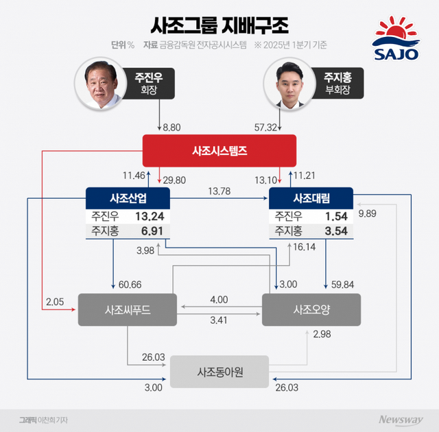 더욱이 사조그룹은 계열사 간 복잡한 순환출자 고리로 오너 일가의 지배력을 강화하면서 '3%룰'을 우회해온 만큼, 공정위가 이들의 행보를 예의주시할 가능성이 있다. 순환출자는 동일 기업 내 계열사가 서로 지분(자본)을 돌려가며 확보(출자)해 여러 계열사를 거느리는 방식이다.