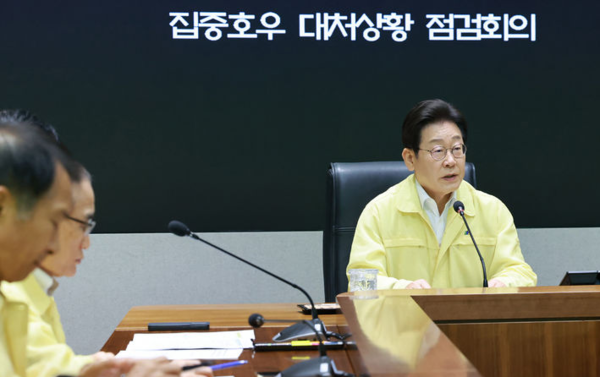 이재명 대통령은 18일 오전 정부서울청사 중앙재난안전상황실 서울상황센터에서 집중호우 대처상황 점검회의를 열고 "어제 오늘 계속 폭우가 쏟아져서 여기저기서 인적, 물적 피해가 발생하고 있다"며 "행정안전부를 중심으로 전 부처와 기관들이 쓸 수 있는 모든 자원과 행정력을 총동원해야 될 것 같다"며 대응에 만전을 기해달라고 지시했다.