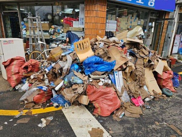 그중 한 철물점 주인에게 피해가 어땠냐고 물으니 “물이 여까지(허리춤) 차올랐다”며 작년보다 더 피해가 컸다고 했다.