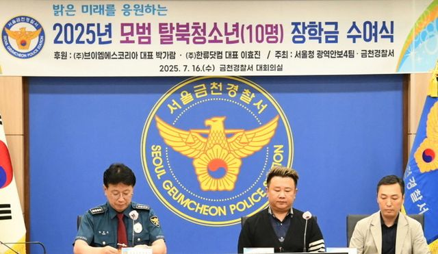 [파이낸셜경제=김영란 기자] 금천구 內 탈북민 자녀들 중 청소년들을 대상으로 한 장학금 전달식이 7월 16일 오후 15시 금천경찰서 3층 중회의실에서 개최됐다