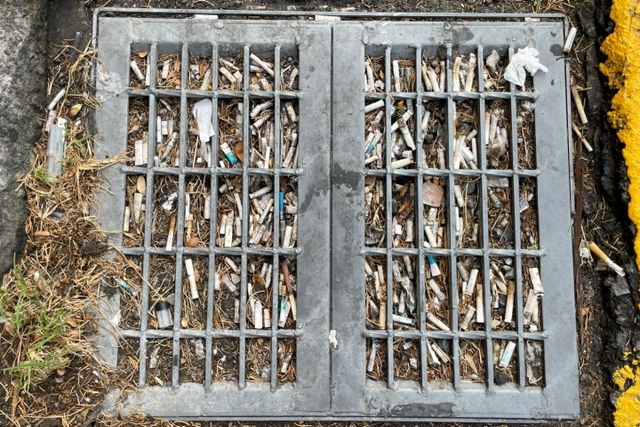 18일 오전 제주시 연동 제원사거리 인근의 한 빗물받이가 담배꽁초 등 쓰레기로 가득 차 있다.
