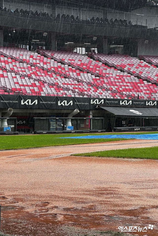 당초 기상청은 17일 광주·전남에 100∼200mm 비가 올 것으로 예보했으나 비구름대가 예상보다 남하하면서 광주 지역에 극한 호우가 내렸다. 오전부터 폭우가 쏟아지면서 그라운드 곳곳에 물웅덩이가 생겼고, 늦은 밤까지 천둥·번개를 동반한 강한 비가 내렸다.