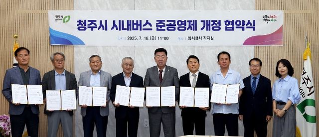 협약식에는 이범석 청주시장과 청신운수, 동일운수, 청주교통, 우진교통, 동양교통, 한성운수 등 6개 시내버스 업체 대표들이 참석했다.